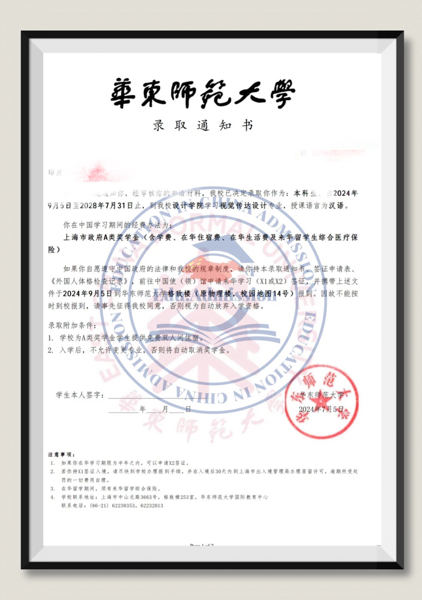 Shanghai government scholarship Type-A Admission (Free tuition fee, free Accommodation fee, free insurance, Monthly stipend)