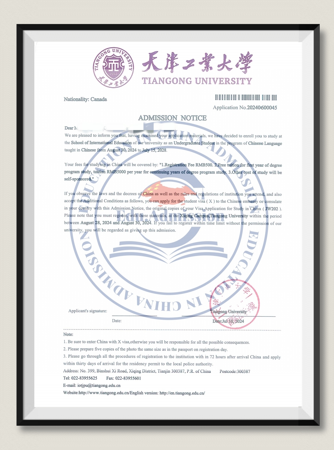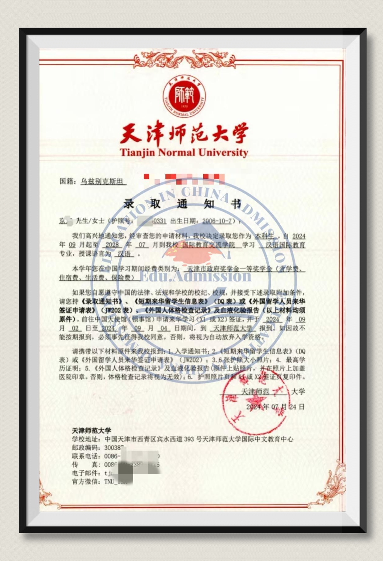 Tianjin government Scholarship ( Free tuition fee, free accomodation fee, free insurance)
